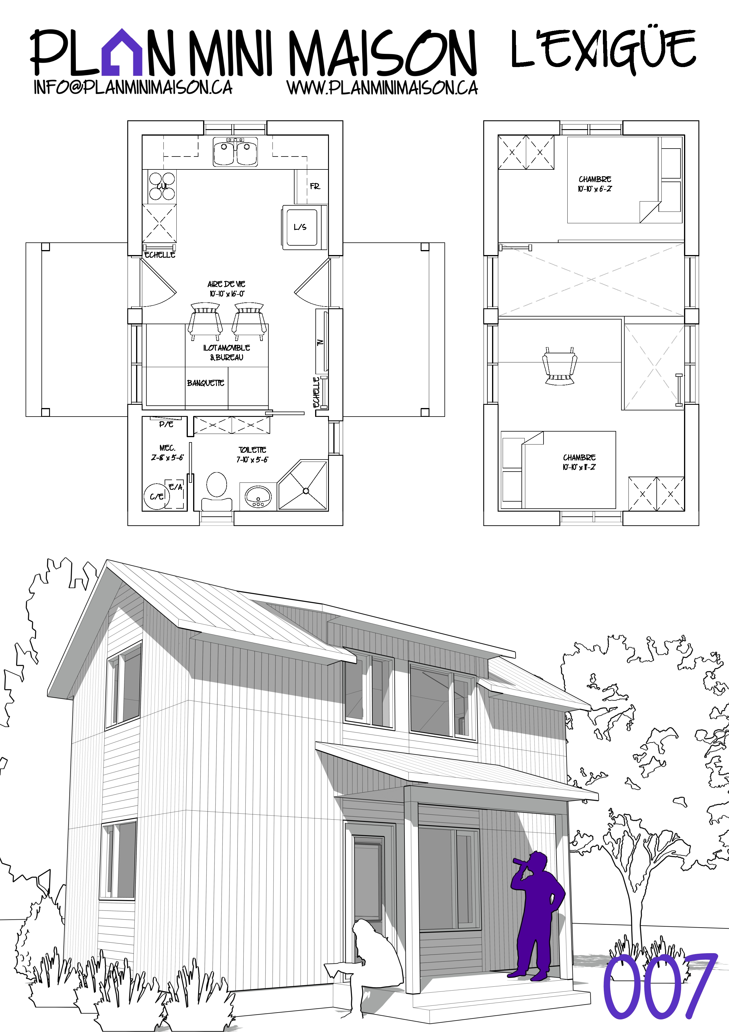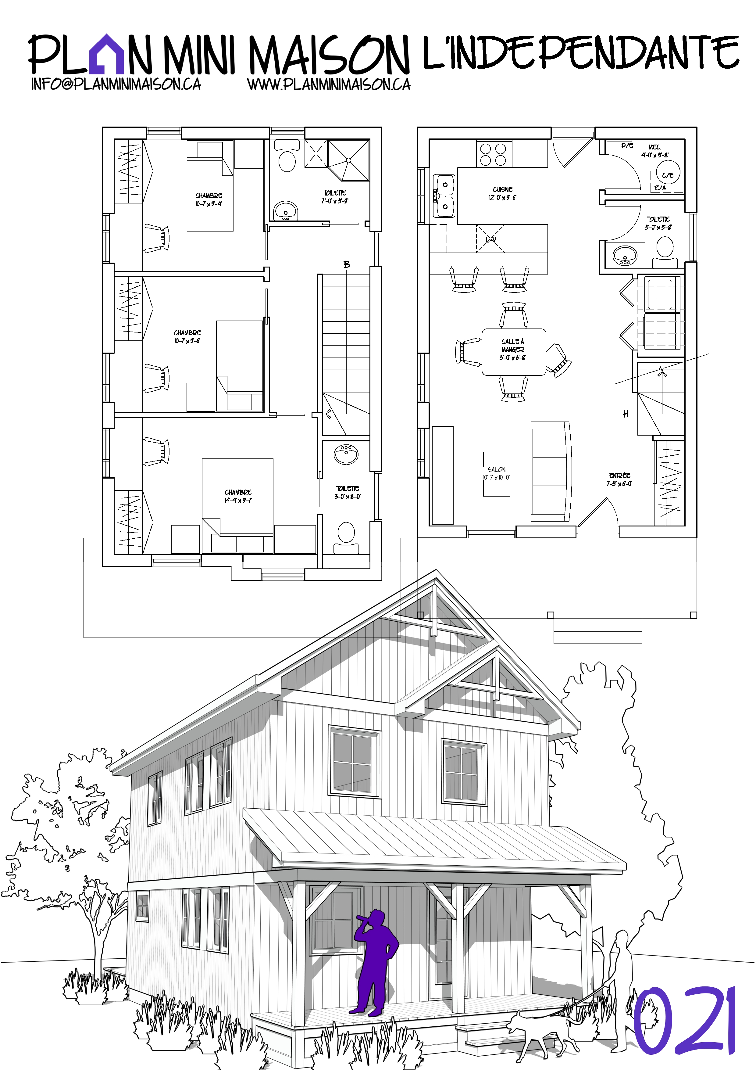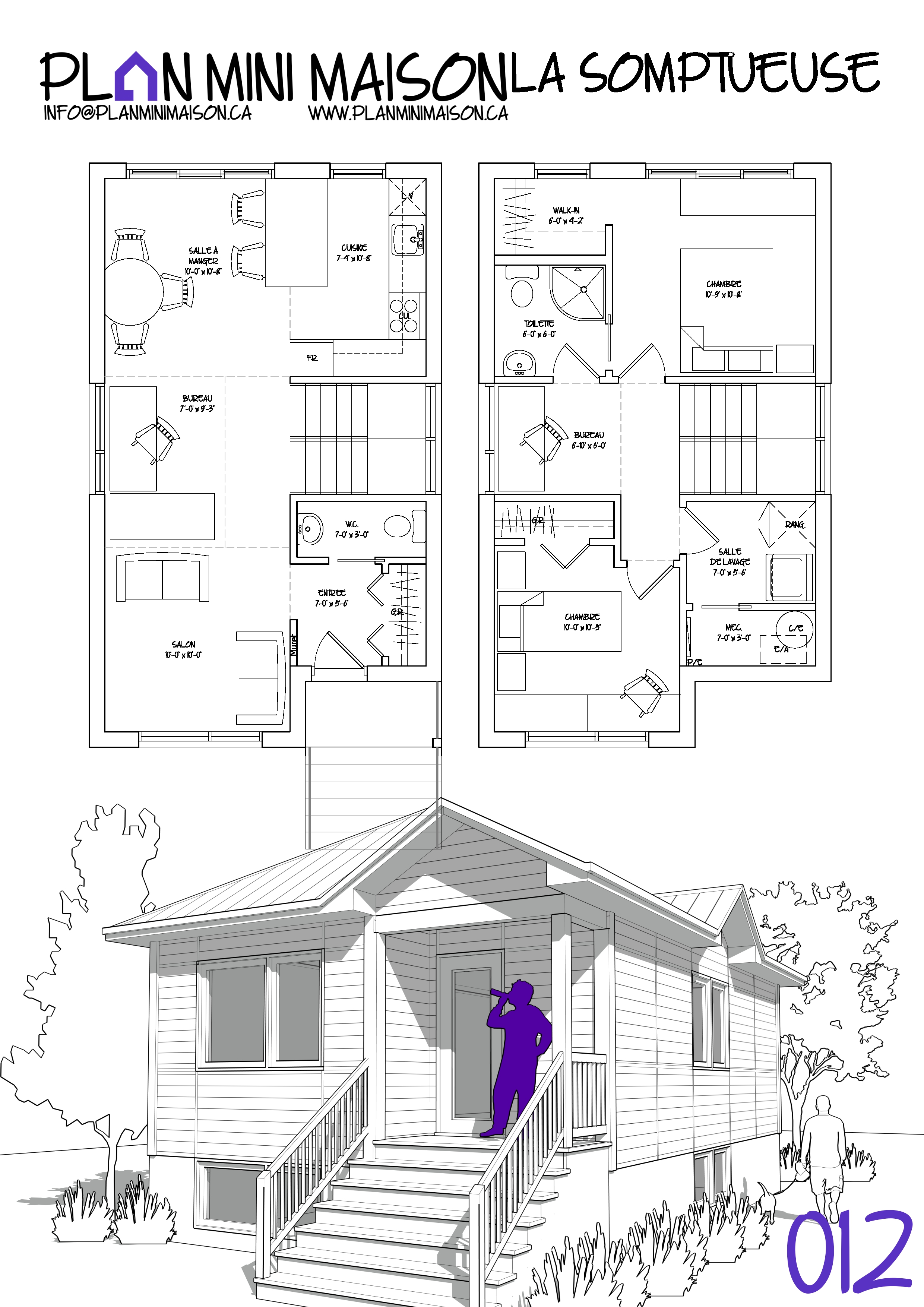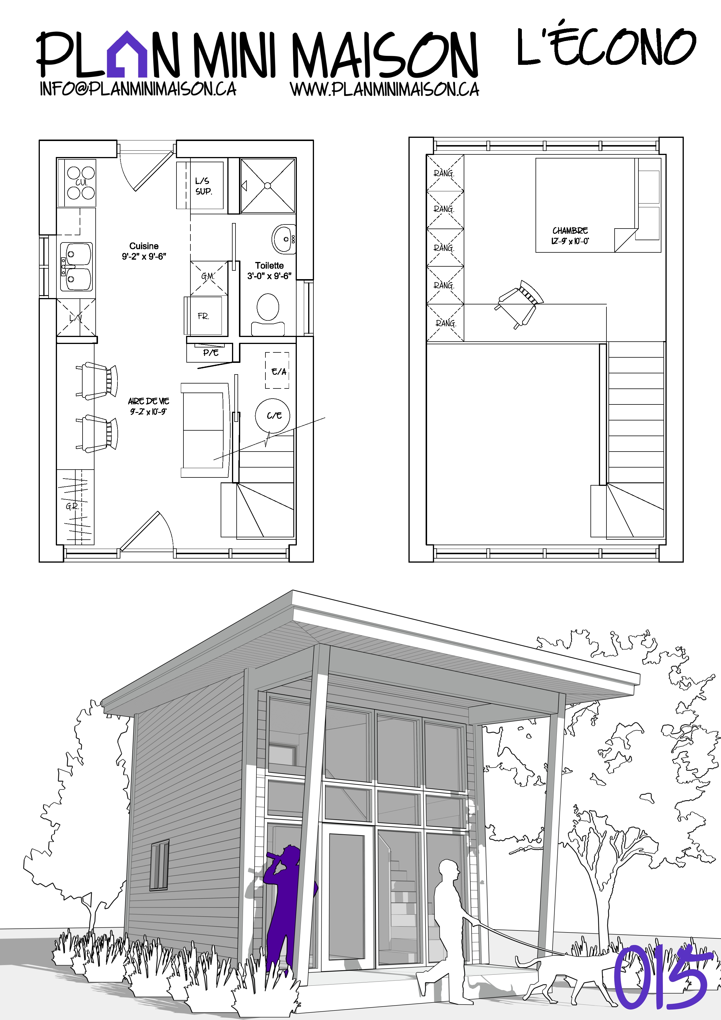 Si l’un de nos « concepts » de modèles vous intéresse et que nous manquons de temps pour les compléter, sachez que vous avez la possibilité d’acheter les droits d’auteur pour seulement 149$+taxes. Vous pourrez alors consulter un autre technologue en architecture pour la conception des plans pour construction. Simplement en faire la demande à l’adresse courriel suivante : info@planminimaison.ca