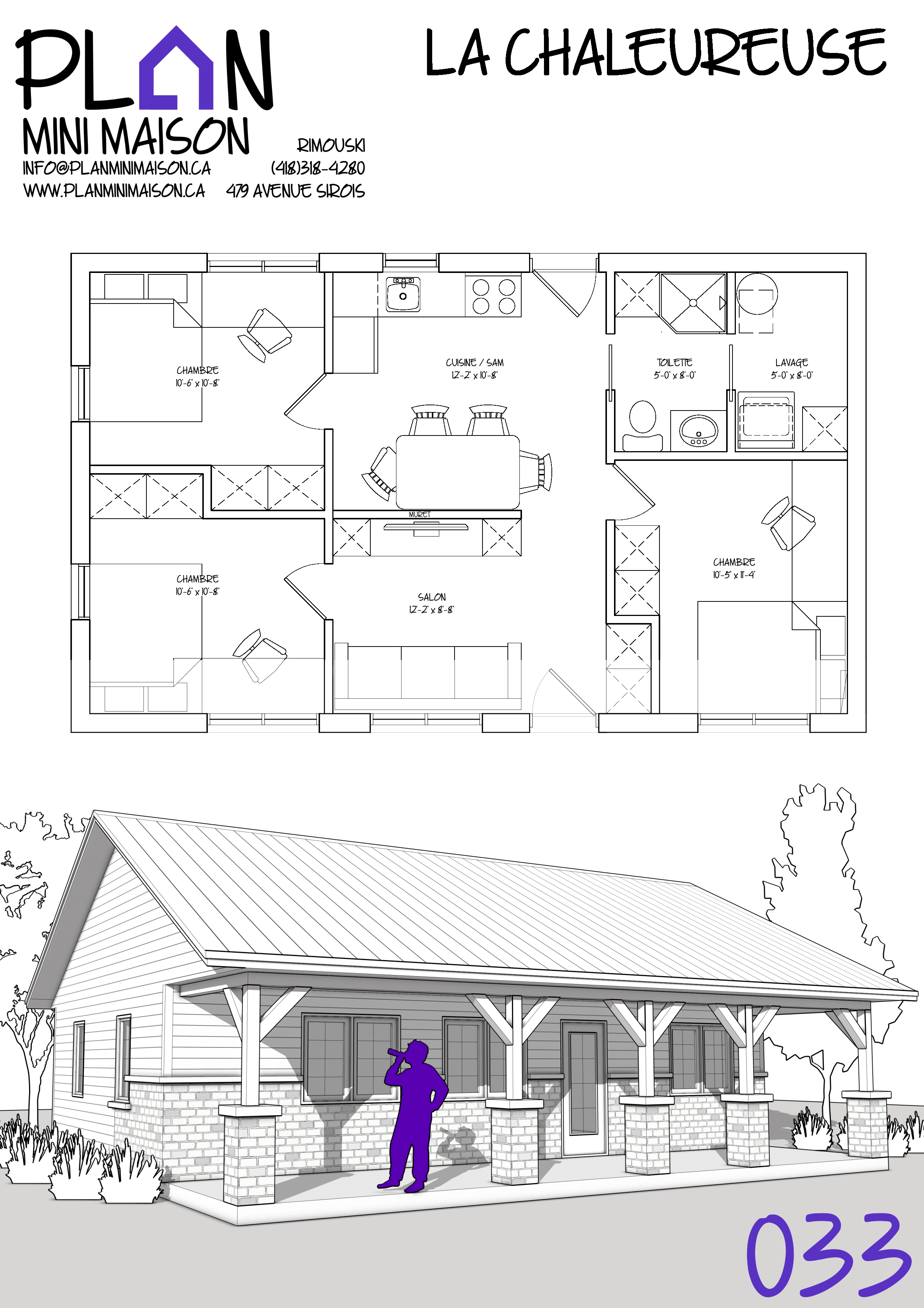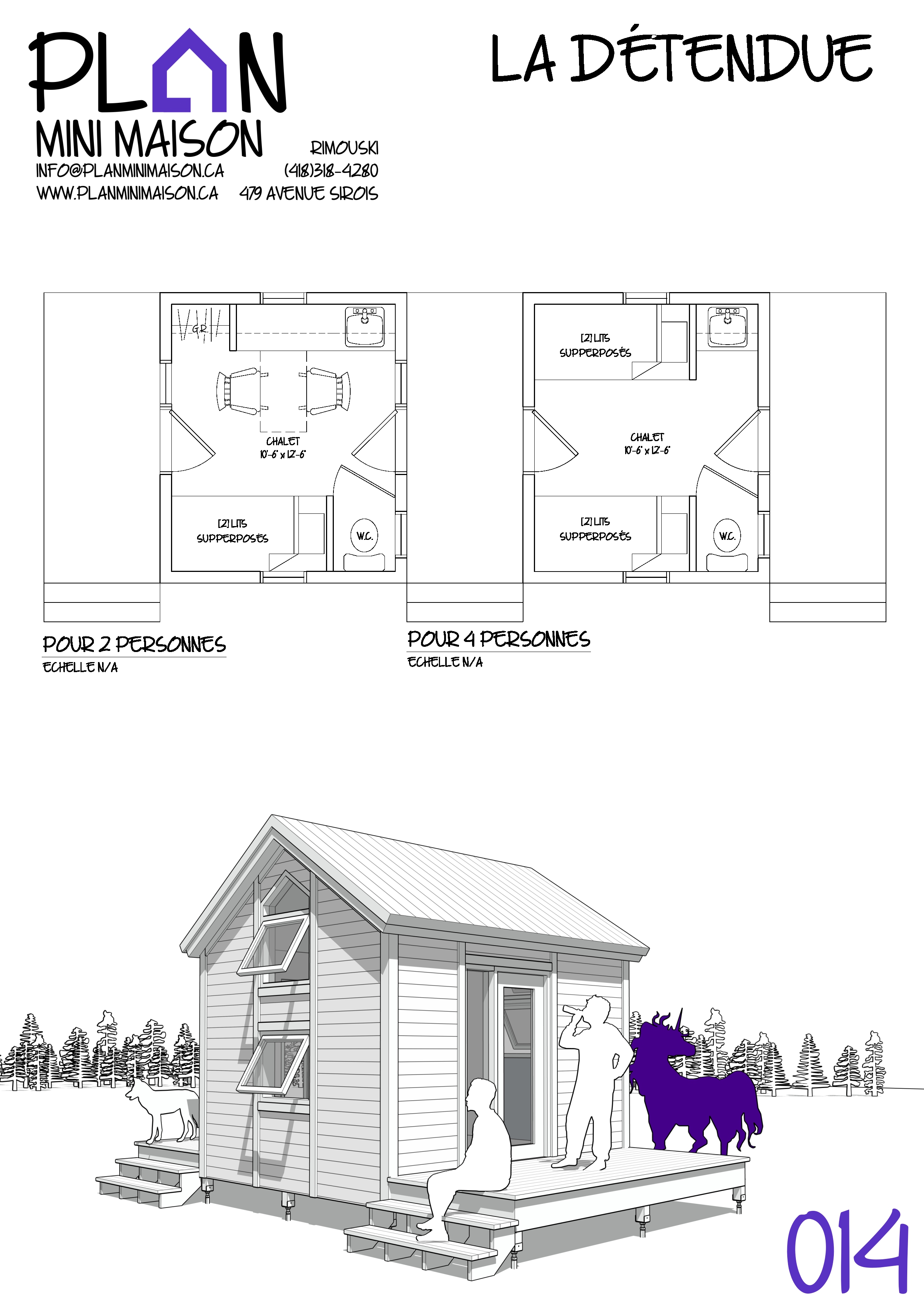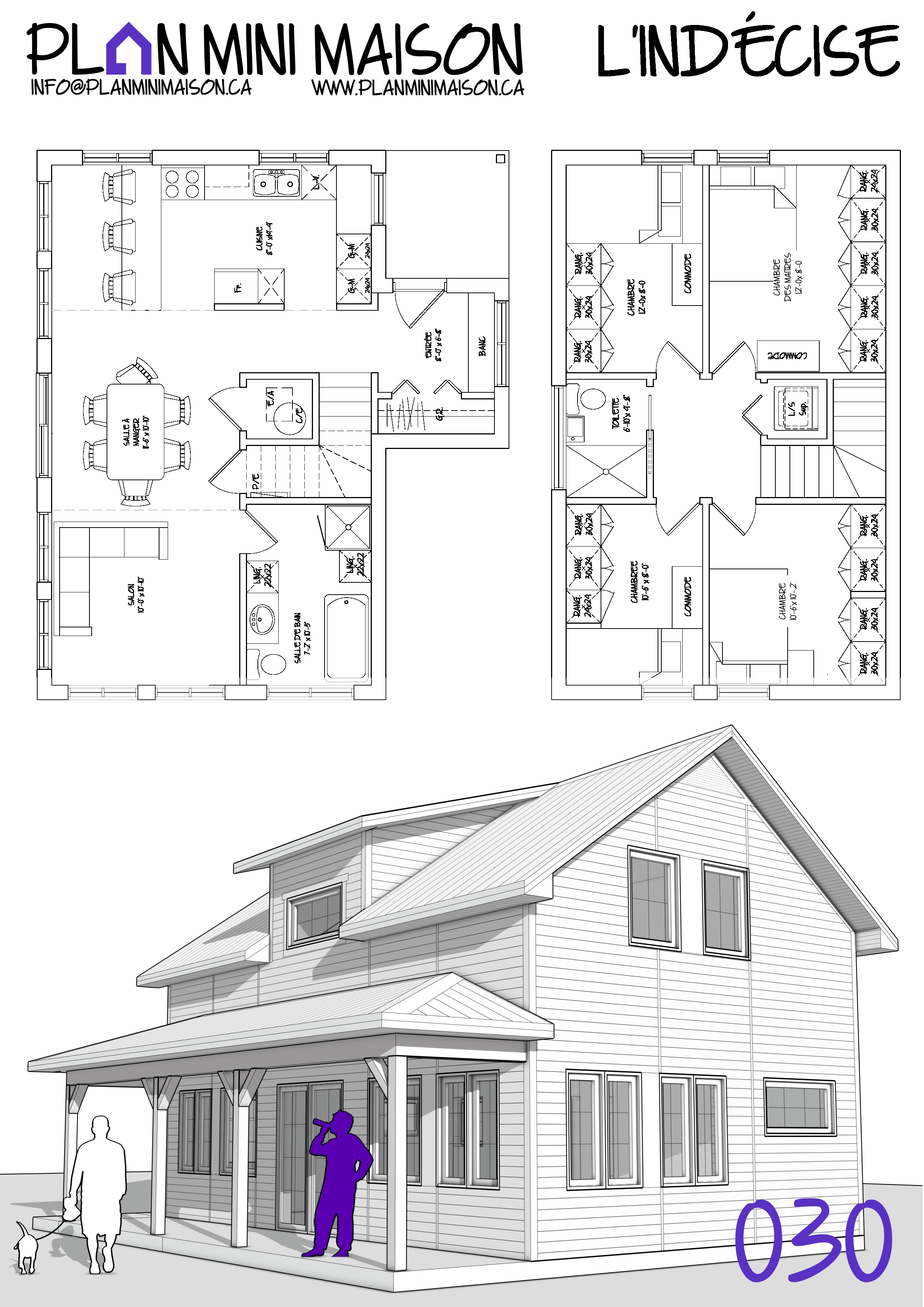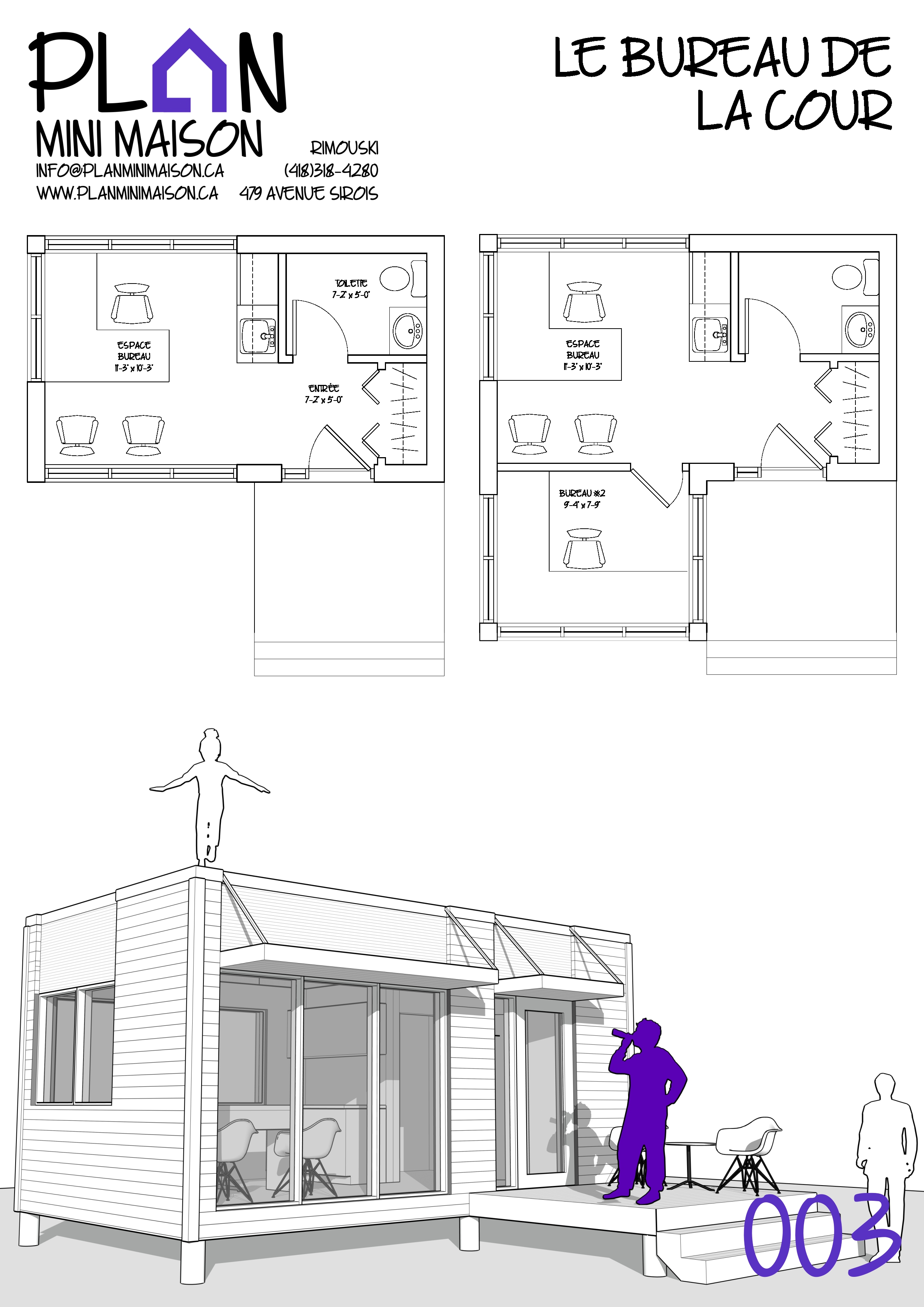 Si l’un de nos « concepts » de modèles vous intéresse et que nous manquons de temps pour les compléter, sachez que vous avez la possibilité d’acheter les droits d’auteur pour seulement 149$+taxes. Vous pourrez alors consulter un autre technologue en architecture pour la conception des plans pour construction. Simplement en faire la demande à l’adresse courriel suivante : info@planminimaison.ca