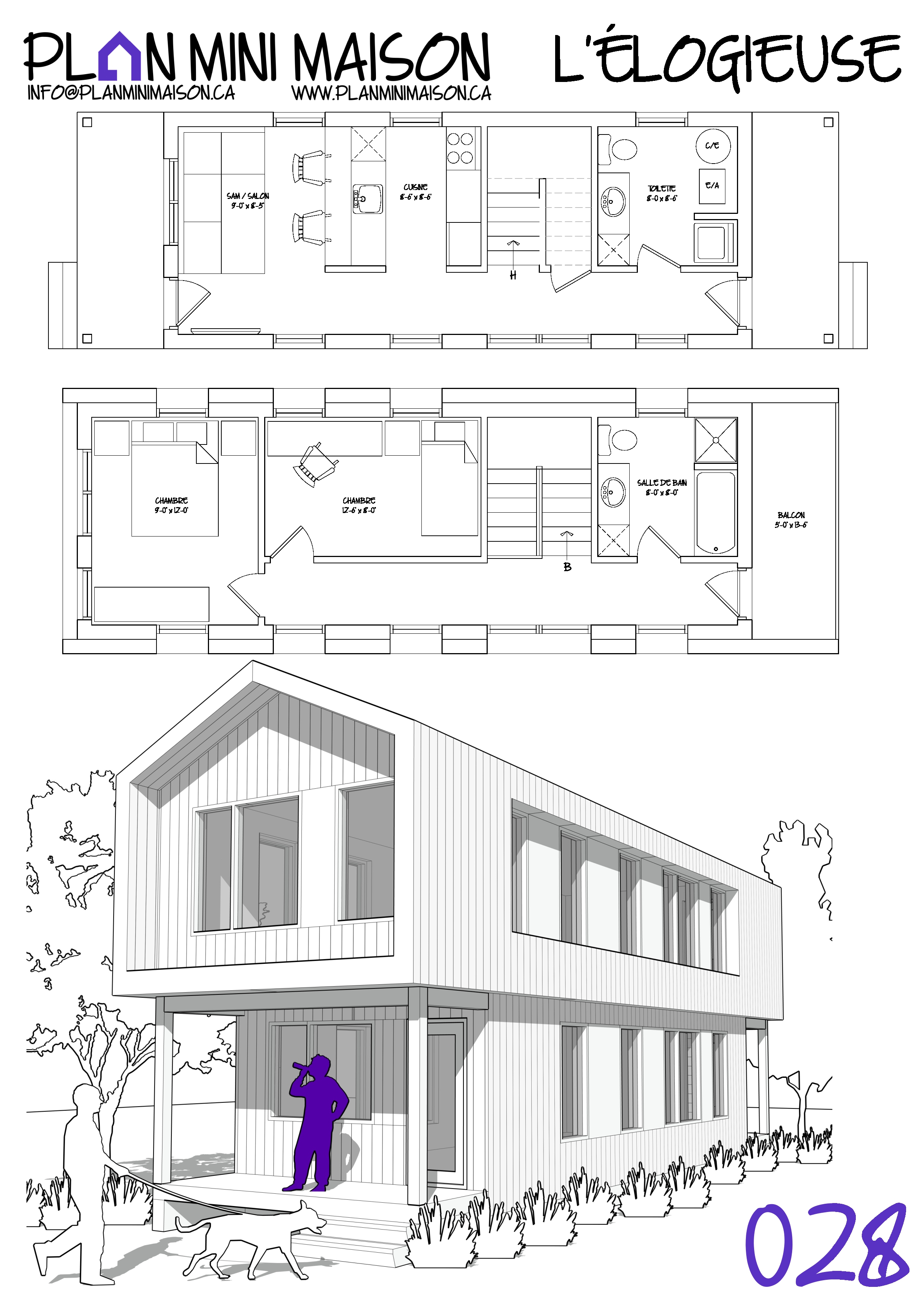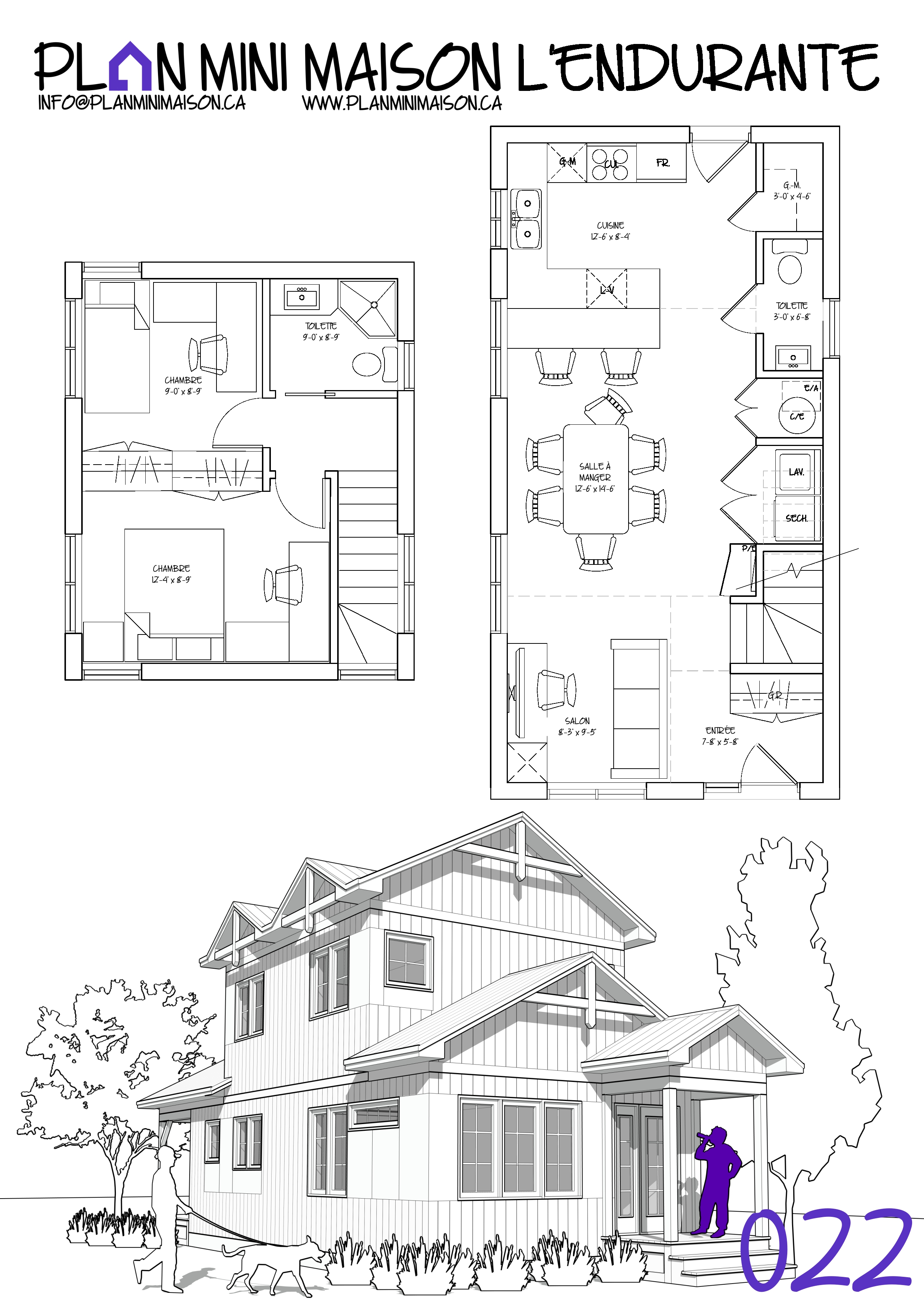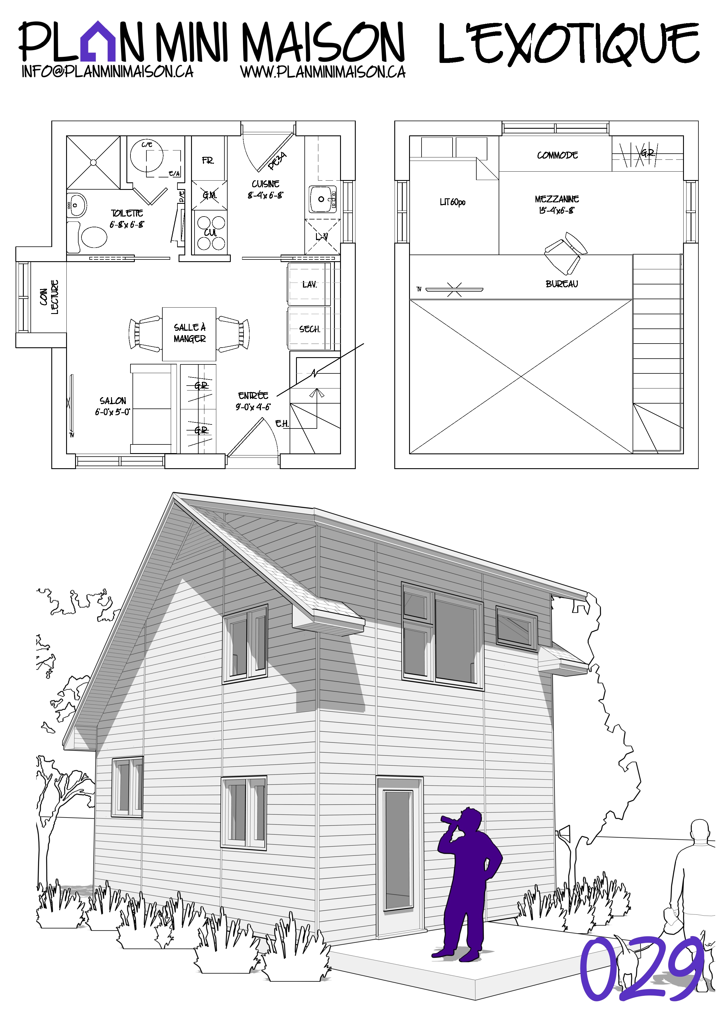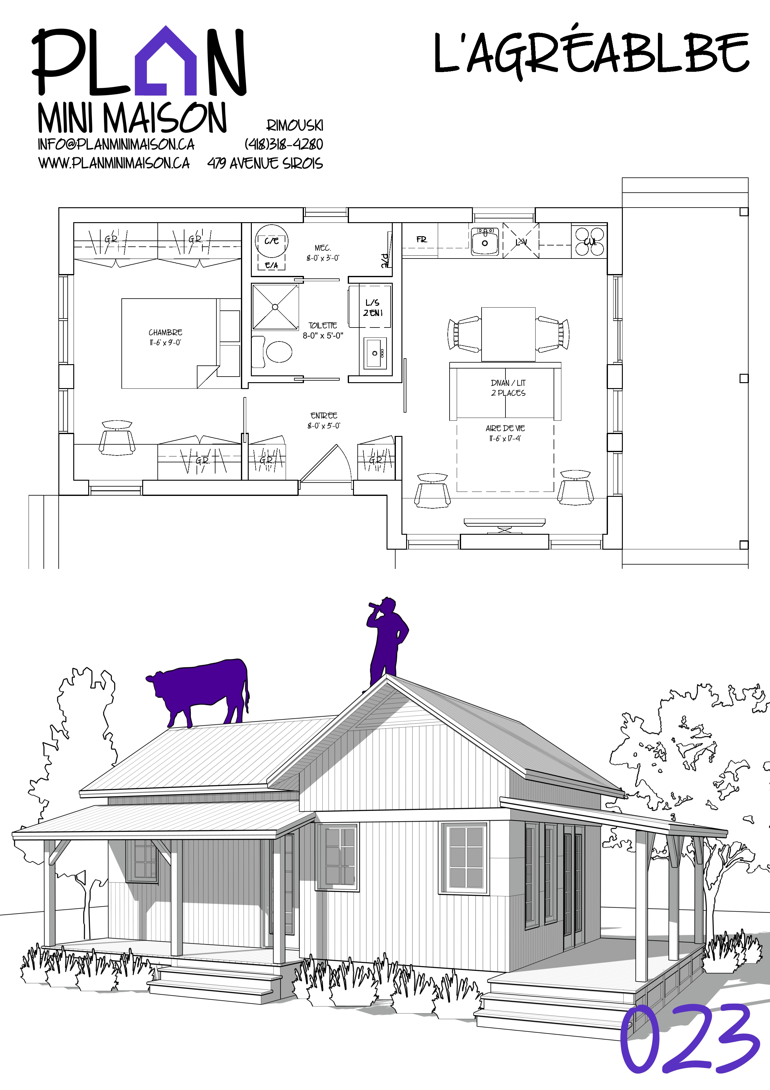 Si l’un de nos « concepts » de modèles vous intéresse et que nous manquons de temps pour les compléter, sachez que vous avez la possibilité d’acheter les droits d’auteur pour seulement 149$+taxes. Vous pourrez alors consulter un autre technologue en architecture pour la conception des plans pour construction. Simplement en faire la demande à l’adresse courriel suivante : info@planminimaison.ca