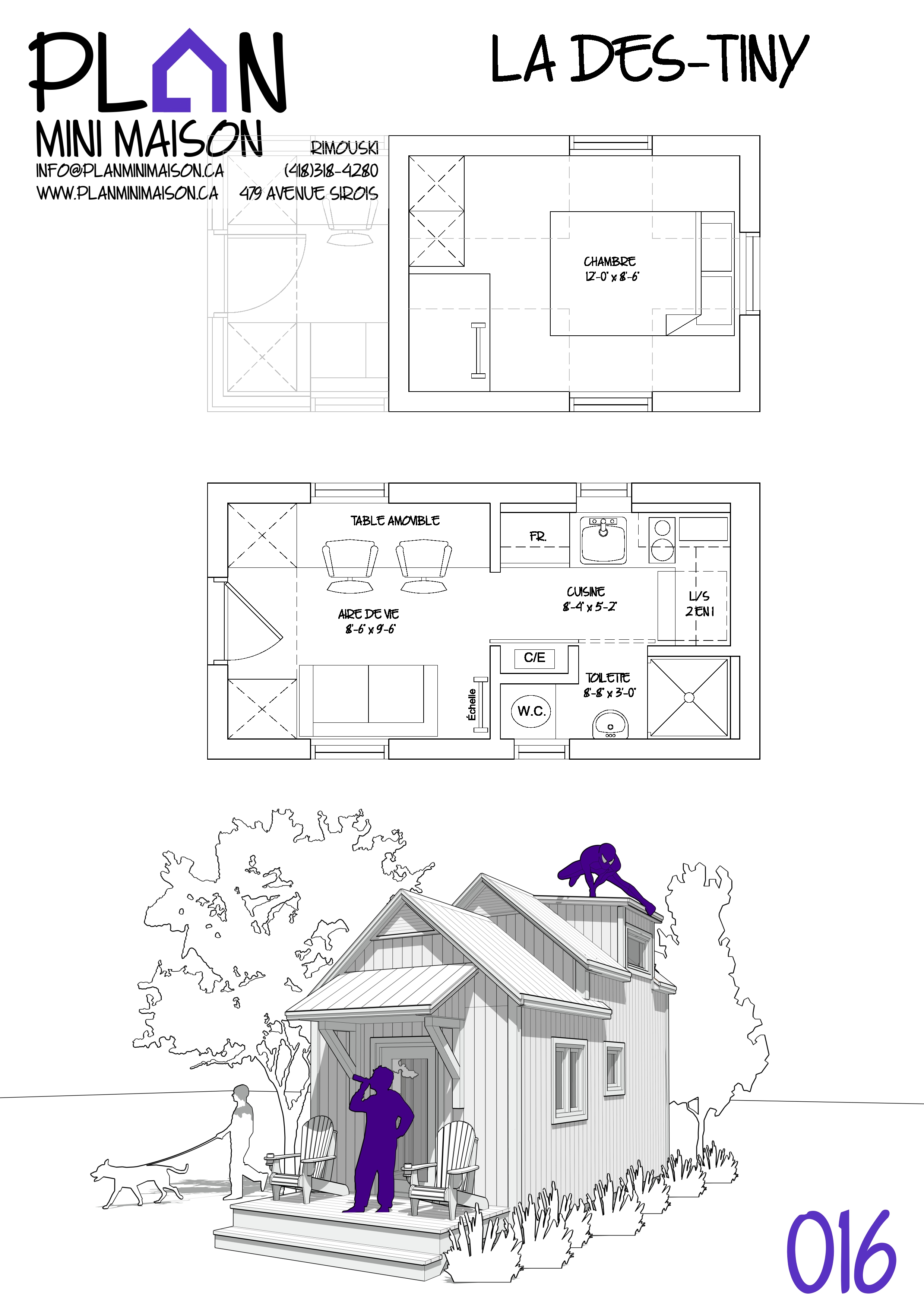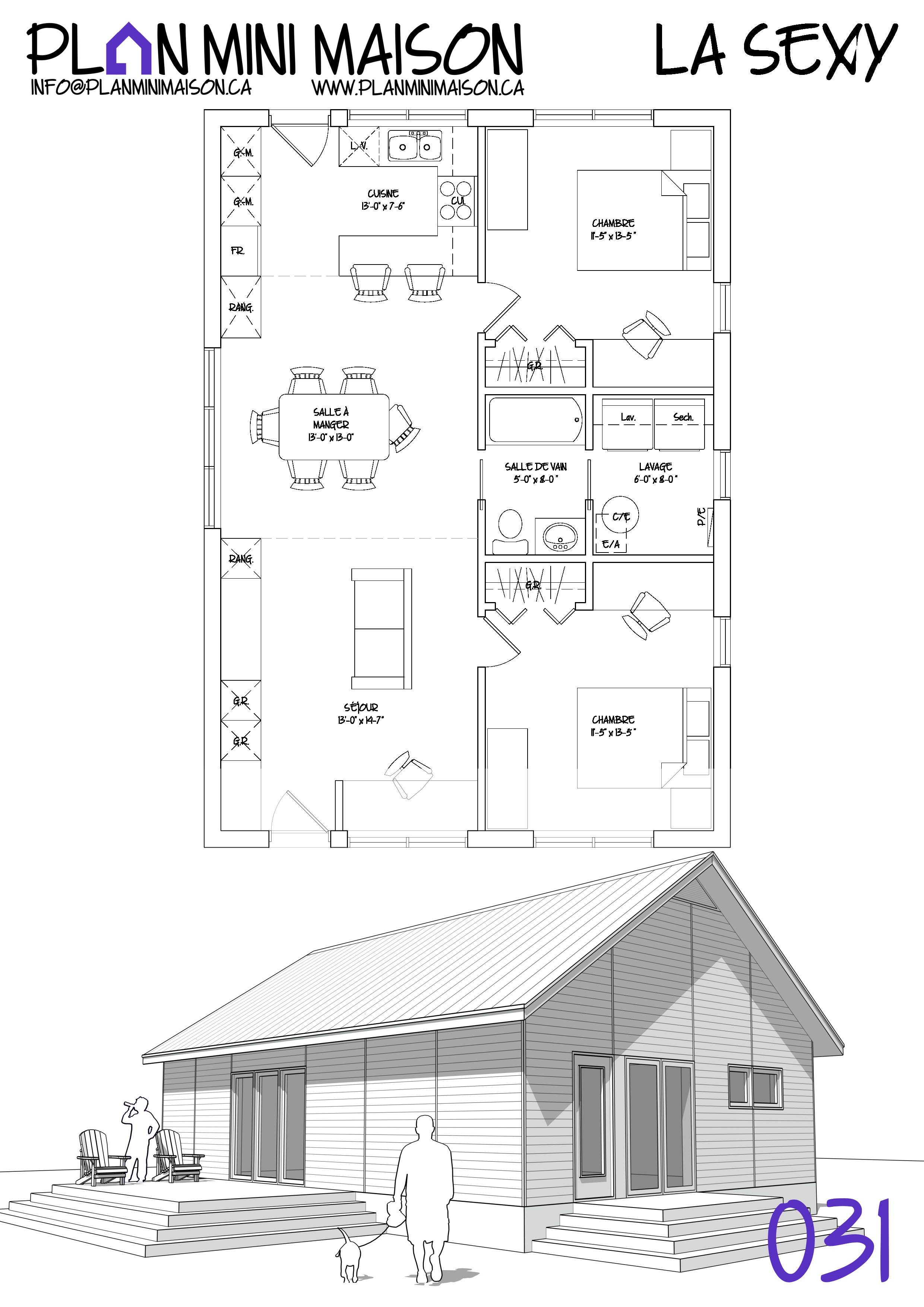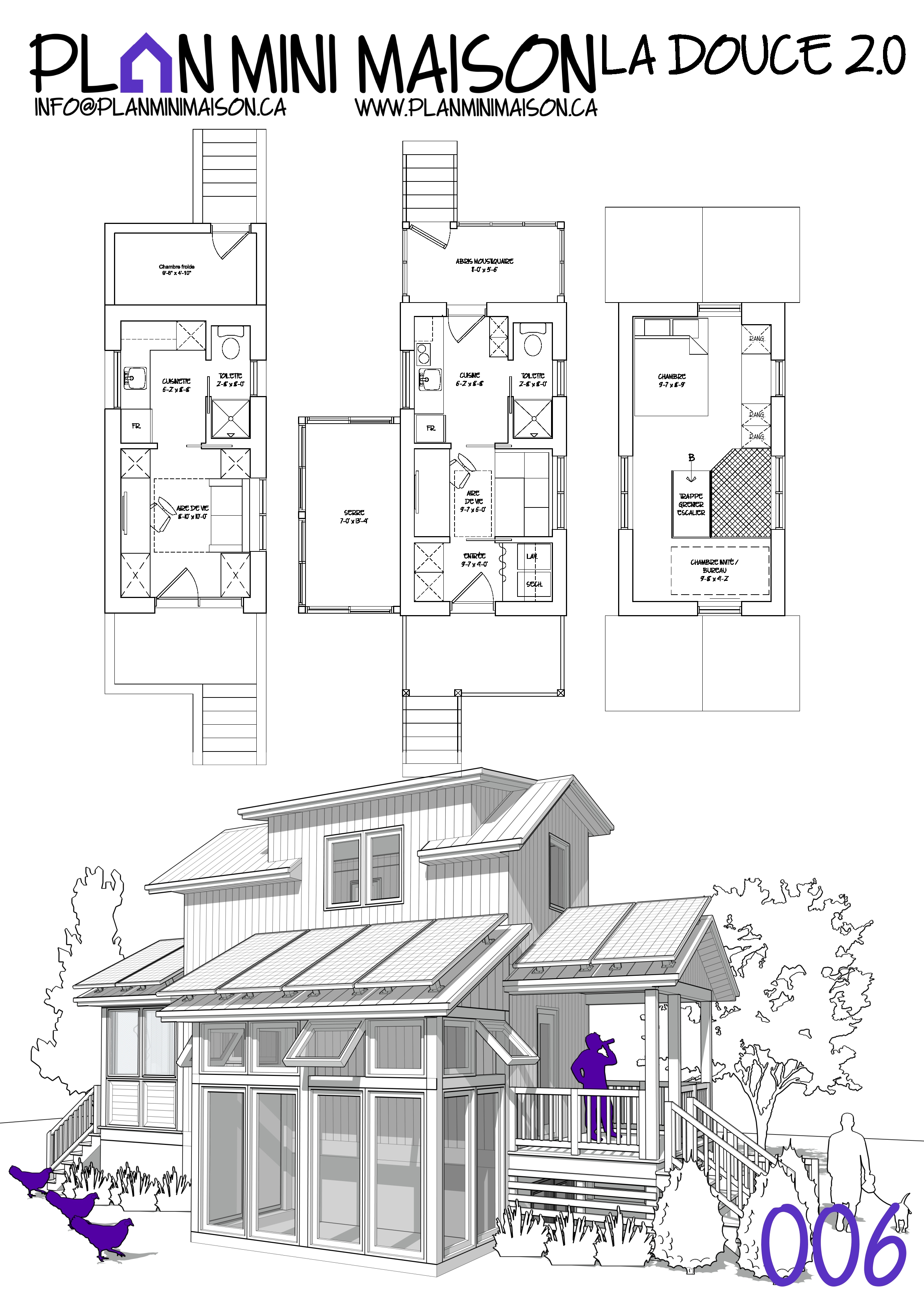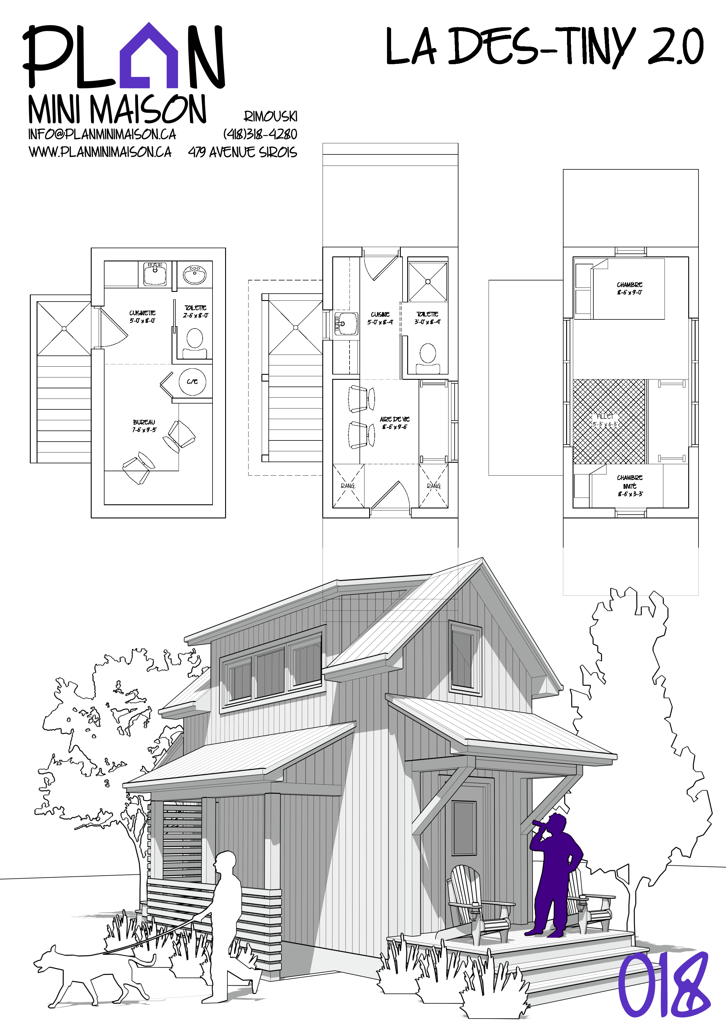 Si l’un de nos « concepts » de modèles vous intéresse et que nous manquons de temps pour les compléter, sachez que vous avez la possibilité d’acheter les droits d’auteur pour seulement 149$+taxes. Vous pourrez alors consulter un autre technologue en architecture pour la conception des plans pour construction. Simplement en faire la demande à l’adresse courriel suivante : info@planminimaison.ca