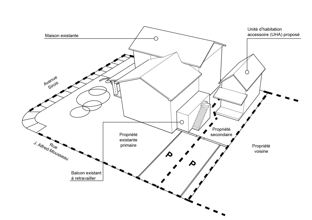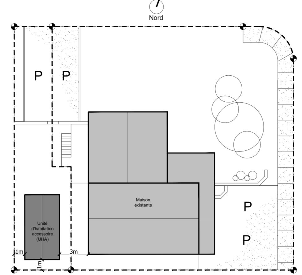 Les unités d’habitation accessoire (UHA) : ce sont de petits bâtiments dits secondaires : un petit pavillon, une maison d’invités, un logement supplémentaire pour la location ou un membre de votre famille, un bureau, etc. Le qualificatif accessoire est utilisé car elles s’insèrent sur un lot avec un bâtiment principal déjà présent. Pour faire un certain parallèle, il s’agit d’un phénomène qui s’apparente aux parcs de maisons mobiles/modulaires qui étaient populaires il y a déjà de cela plusieurs décennies.